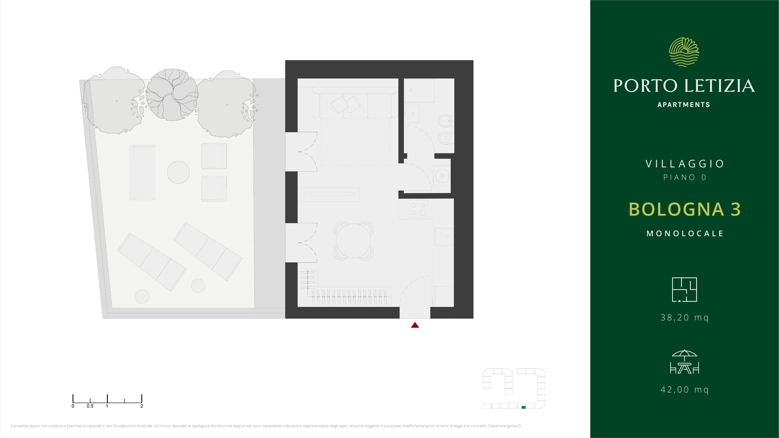 Gli appartamenti fanno parte di un contesto con piscina, ristorazione e servizi dedicati, elementi che aumentano l’attrattività locativa e sostengono la domanda durante tutto l’anno.
