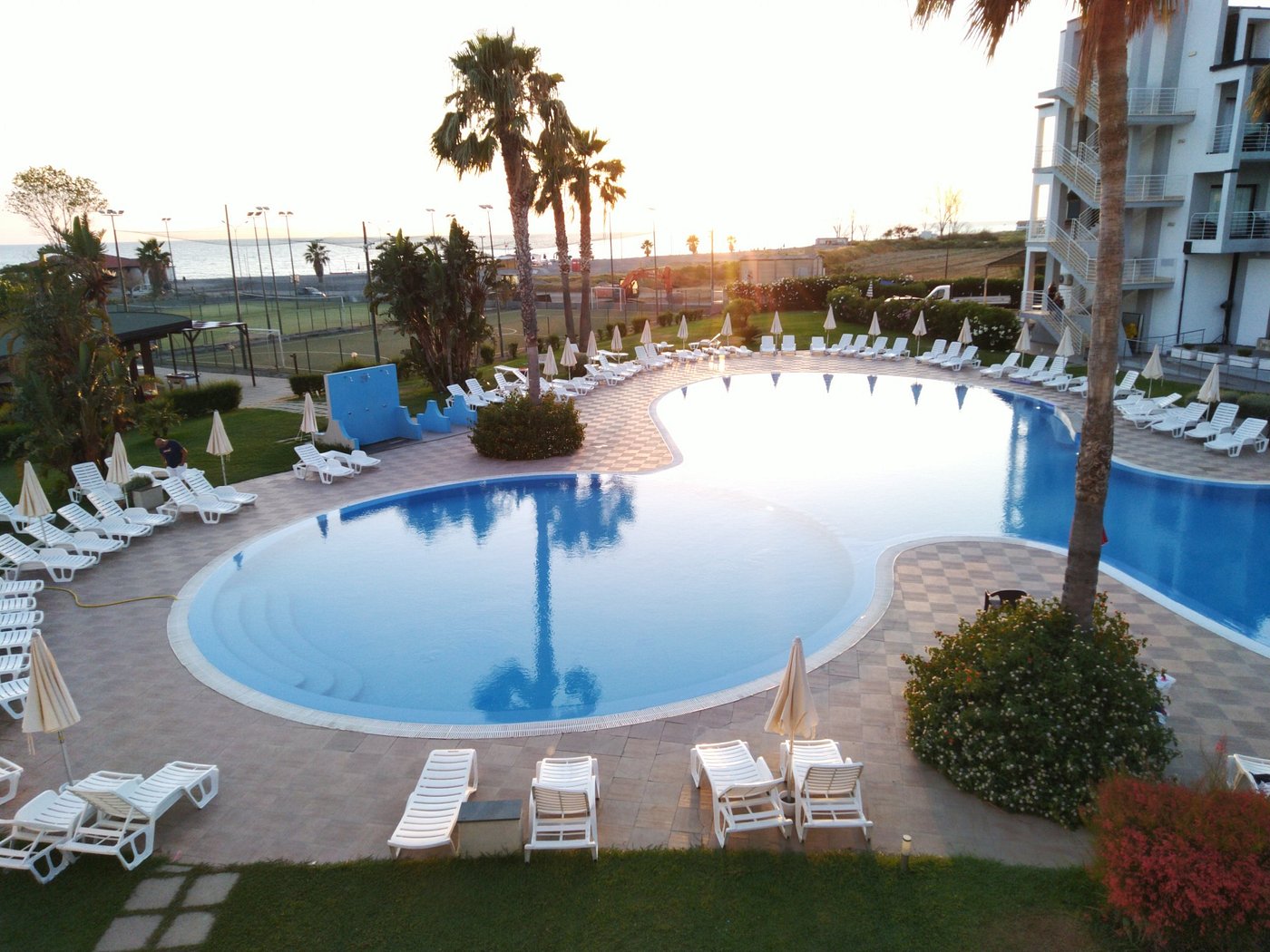 4-star resort for sale, currently closed and not operational, located in Nocera Scalo (a hamlet of Nocera Terinese), coastal town in the province of Catanzaro, between Amantea, Lamezia Terme, and Tropea. Consisting of three main buildings (Building A, B, and C) and an auxiliary block (Building D), with a total area of approximately 9,470 sqm, it features over 100 accommodation units, including traditional hotel rooms and short term rent apartments. Building A hosts 12 independent apartments spread over three levels, each with a private balcony and functional layouts. Building B, the main building of the complex, includes 44 rooms spread over two upper floors and houses the main restaurant, as well as large kitchens and service areas. Building C includes the reception, bar, meeting and conference spaces, and 54 additional rooms, many with lofts and private terraces. The top floor features a panoramic breakfast room. Finally, Building D is dedicated to technical and utility areas. The resort also includes a wide outdoor swimming pool, extensive sports facilities including tennis and multi-purpose courts, and an open-air amphitheater. Temesa Resort is conveniently accessible via the Falerna exit of the A2 motorway and regional roads. Lamezia Terme International Airport is just a few minutes’ drive away, offering fast national and international connections, while the nearby Lamezia Terme Centrale train station provides links to major Italian cities including Rome, Naples, and Milan. Thanks to its privileged location, ample outdoor spaces, and full range of amenities, it represents an interesting opportunity for repositioning in the value-added segment of the hospitality market.